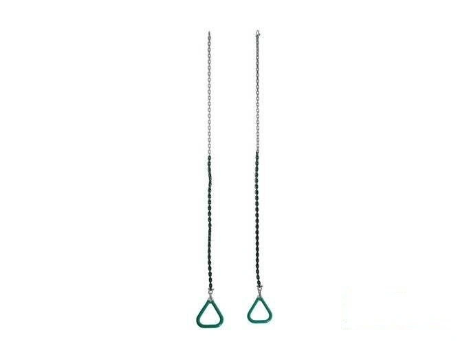 • Unos originales y encantadores aros triangulares de aluminio en una cadena proporcionarán una excelente diversión a cualquier niño. Su funcionalidad permite realizar dominadas tradicionales, ahorcamientos y otros ejercicios para mejorar la forma física.