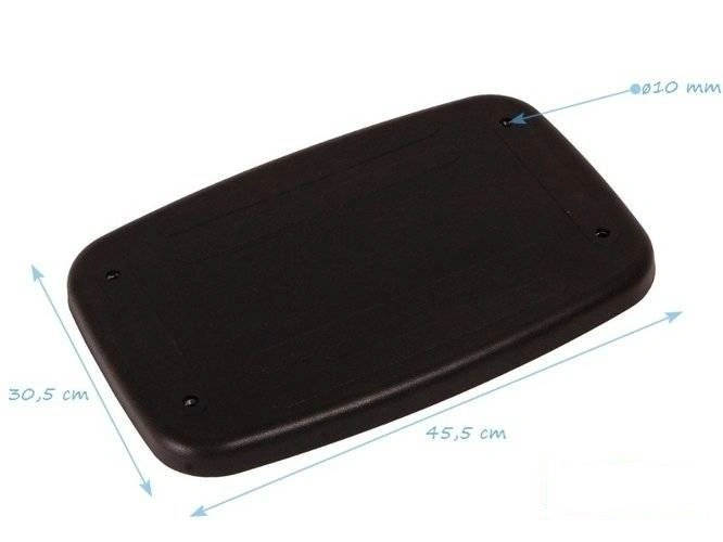 - Asiento de goma con inserto metálico, dimensiones 450x300x 30mm. El asiento cumple las normas de seguridad de los productos destinados a parques infantiles públicos: es antivandálico.