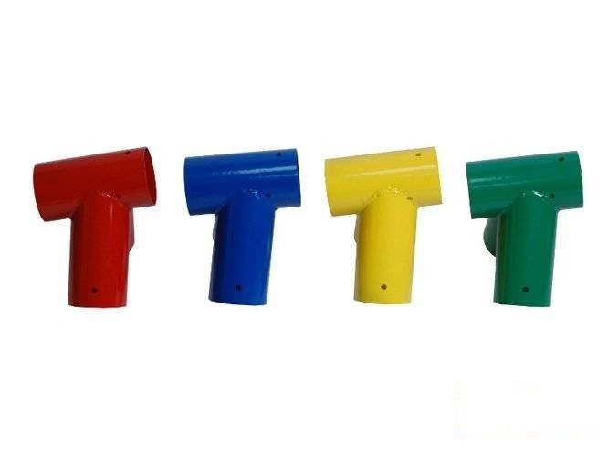 - Conector para viga circular de 100 mm de diámetro destinado a la construcción de columpios. Proporciona una estructura estable y duradera.