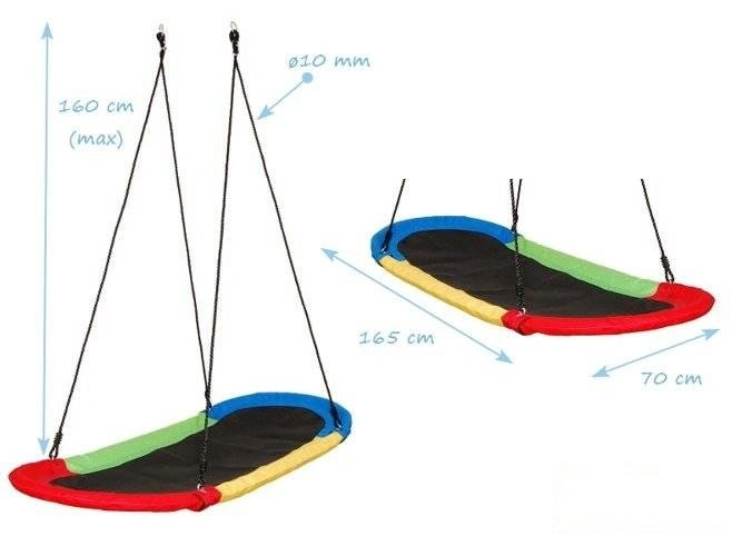 El extraordinario columpio nido de cigüeña completo proporcionará una diversión sensacional a sus hijos. Su diseño y funcionalidad únicos proporcionarán emoción a todos los usuarios. Fabricación robusta, material grueso que rellena el interior del asiento garantizará la seguridad de los niños que juegan. El columpio Nido de cigüeña está diseñado para el patio de casa.