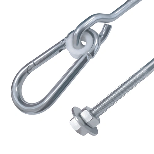 - Para colgar columpios, escaleras y otros accesorios, necesitas un conector de montaje robusto y fiable. La eslinga tipo A con mosquetón se utiliza para la instalación de casi todos los columpios, escaleras, cuerdas y otros accesorios.