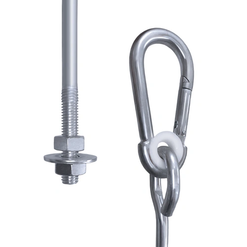 - La eslinga tipo A con mosquetón se utiliza para la instalación de casi todos los columpios, escaleras, cuerdas y otros accesorios.