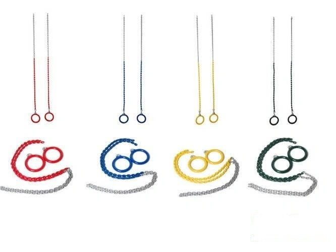 - Unos originales y encantadores aros redondos de aluminio en una cadena proporcionarán una excelente diversión a cualquier niño. Su funcionalidad permite realizar dominadas tradicionales, ahorcamientos y otros ejercicios para mejorar la forma física.