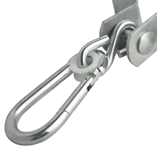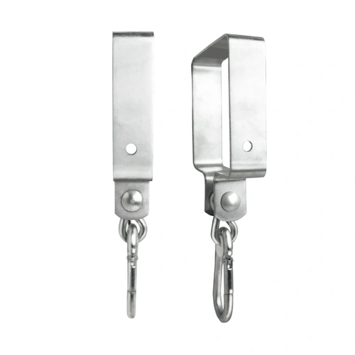 - Soporte metálico para viga de 120 x 120 mm con mosquetón. Aplicado m.en. para fijar columpios y otros dispositivos a la estructura.