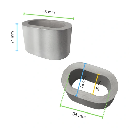 - Anillo de sujeción ovalado de aluminio para alambre reforzado Ø16 mm tipo I. Nuestros productos están protegidos de la intemperie.