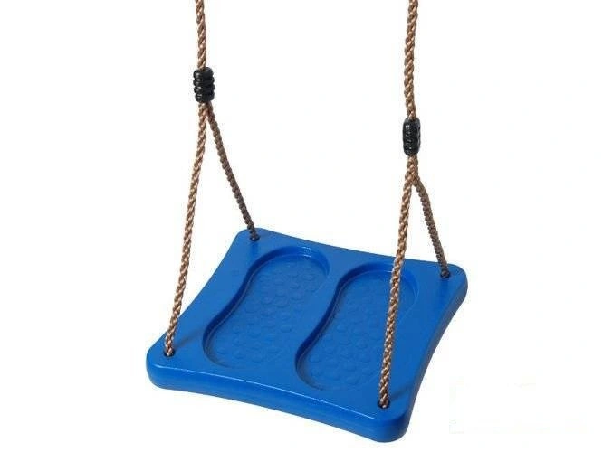 - Asiento cuadrado de plástico. Un columpio que ofrece la posibilidad de columpiarse tanto sentado como de pie - en la superficie del asiento se forman dos orificios en forma de pie. Adecuado tanto para exteriores como para interiores.