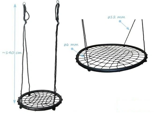 Extraordinario columpio redondo en forma de nido de cigüeña que proporcionará una diversión sensacional a sus hijos. Su diseño y funcionalidad únicos proporcionarán emoción a todos los usuarios. Fabricación robusta, la gruesa cuerda entretejida que rellena el interior del asiento garantizará la seguridad de los niños que juegan. Stork's Nest Slim Swing está diseñado para el patio de casa.