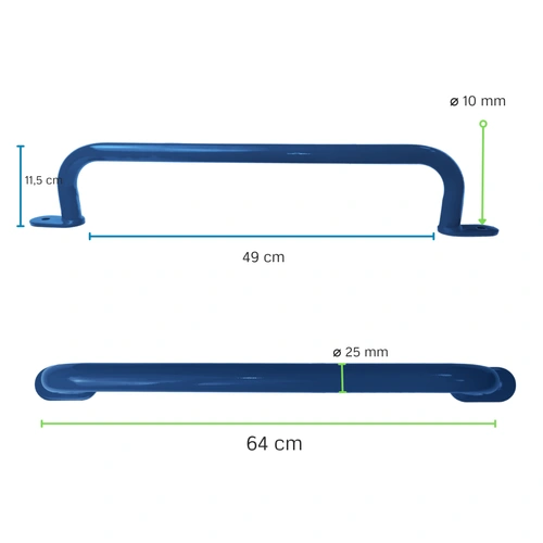 - Asa metálica disponible en rojo. Los asideros se utilizan en las estructuras de los parques infantiles para facilitar el ascenso por las escaleras y aumentar así la seguridad.