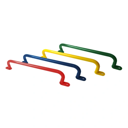 - Asa metálica disponible en rojo. Los asideros se utilizan en las estructuras de los parques infantiles para facilitar el ascenso por las escaleras y aumentar así la seguridad.