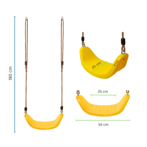 El columpio de plástico LUX garantiza comodidad y seguridad para su hijo. Su forma lunar y sus jugosos colores interesarán a cualquier niño pequeño. Está diseñado para el patio de recreo. Diseñado para ofrecer la máxima seguridad y durabilidad, el columpio LUX tiene una superficie de asiento antideslizante y laterales elevados.