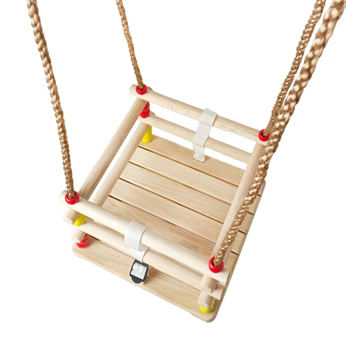 Original columpio de cubo de madera diseñado para los más pequeños. Seguro, funcional y llamativo. Hará feliz a cualquier niño y encantará a cualquier padre o cuidador. El columpio de cubo de madera está diseñado para el patio de casa.