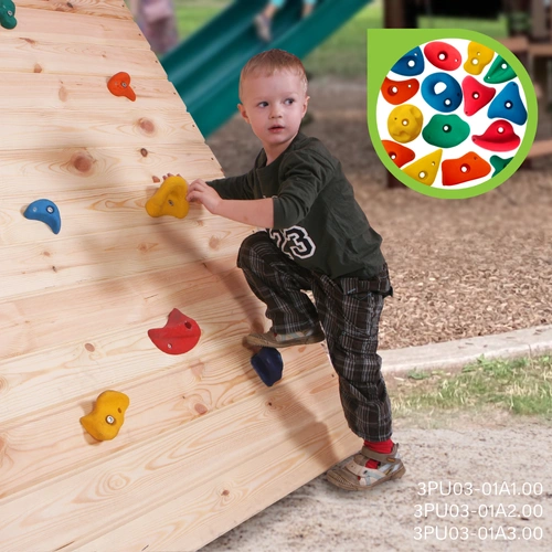 Te gustaría que fuera divertido para tus hijos? Crear un lugar para que mejoren su forma física, su coordinación, su fuerza muscular y se desafíen a sí mismos, además de divertirse. Para ello necesitas nuestras piedras de escalada. Disponibles en una gran variedad de formas, colores y tamaños, además de ser funcionales proporcionan mucha diversión y entretenimiento. Harán más atractivo cualquier rocódromo, sustituirán a los típicos escalones de torres de juego, toboganes y otras estructuras.