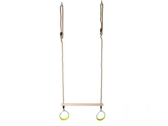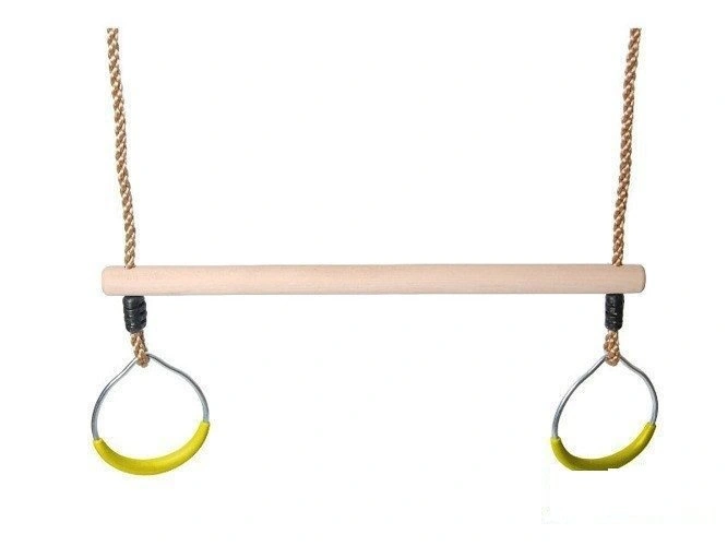 • Trapecio de madera con aros redondos sobre cuerdas. Una forma estupenda de divertirse de forma segura combinada con actividad física.